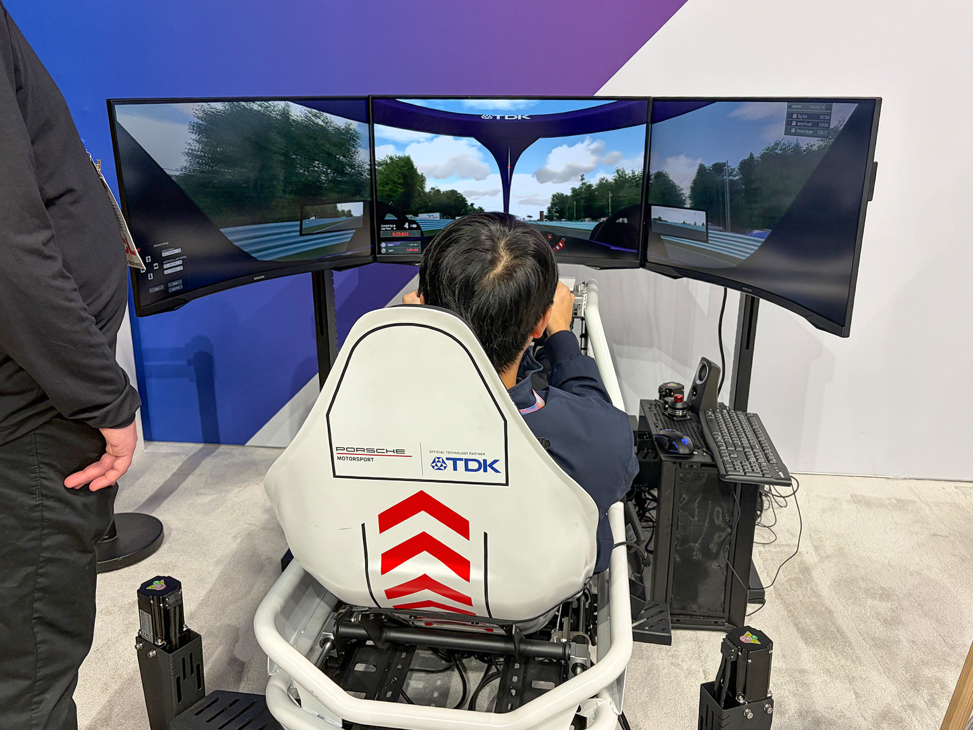 Enjoy a ride on the Porsche Formula E simulator at the TDK booth for your chance to win a Porsche Motorsport ✕ TDK co-branded accessory.